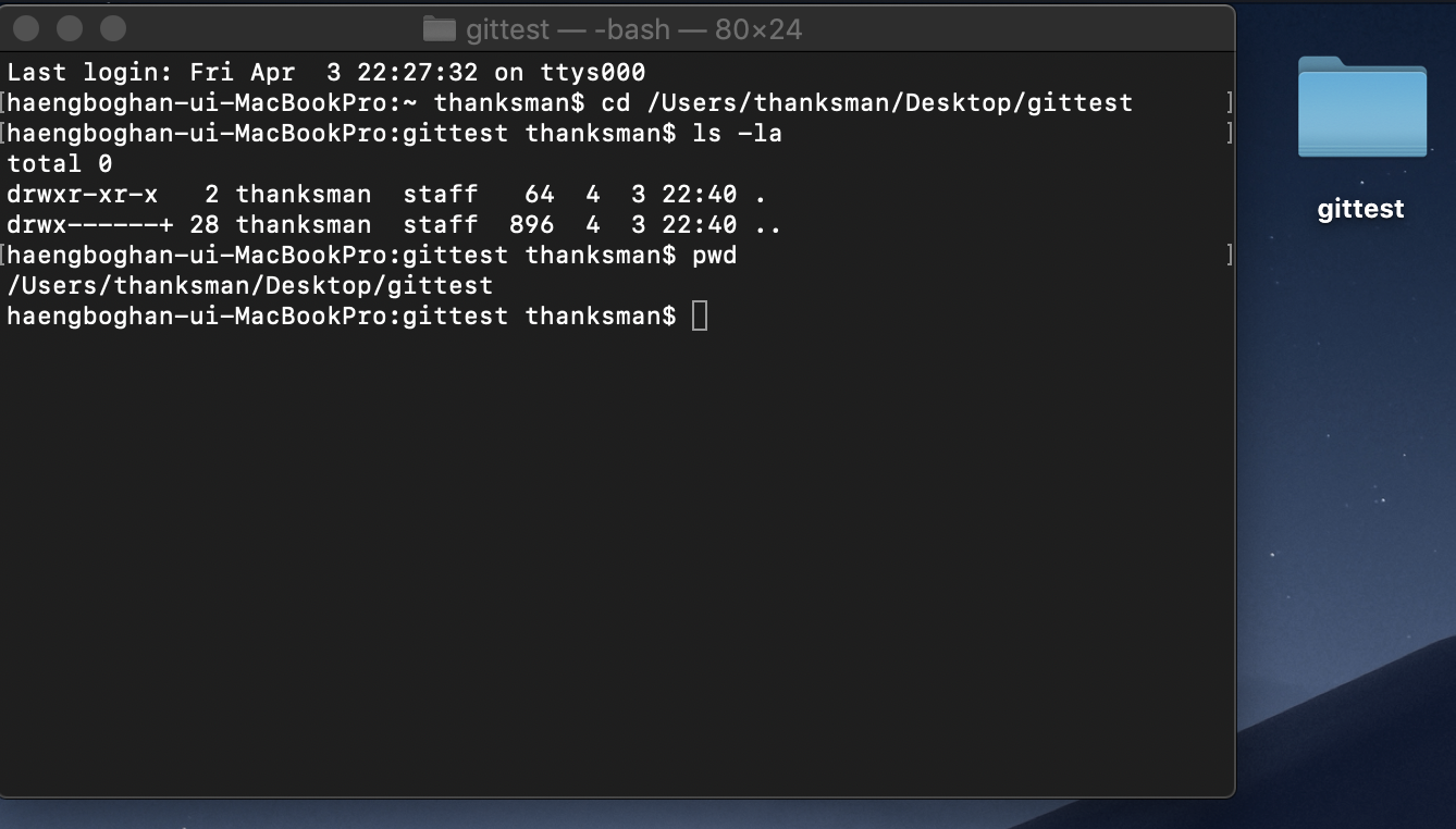 깃은 소스코드의 버전을 관리하는 도구다. 버전: 의미있는 변화 또는 작업이다. 어떤 작업이 완결된 상태. 아래는 깃의 간단한 사용법이다. 따라해보자. 1.아무 폴더를 만든다. pwd 로 만든 폴더 위치에 들어온다. 2.바탕화면에 빈폴더를 만들고(gittest) 터미널을 열고, 폴더 위치에서 git init 이라고 명령어를 입력하면 빈폴더에 .git 이라는 파일이 생긴다. 이작업은 저장소에 필요한 기본적인 파일 구조를 만든다. 이파일은 이 폴더에 있는 파일들을 깃이 관리하는것을 도와주는 역할을 한다. 만든 폴더(로컬저장소)에는 세부분으로 나뉘어져있다. 1.작업디렉토리: 실제 파일 존재 -> 2.인덱스(스테이지) : 준비영역 -> 3.HEAD : 최종 확정 (commit) 3. vim mytext.txt 명..